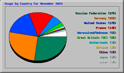 | # | Hits | Files | kB F | kB In | kB Out | Country | |||||